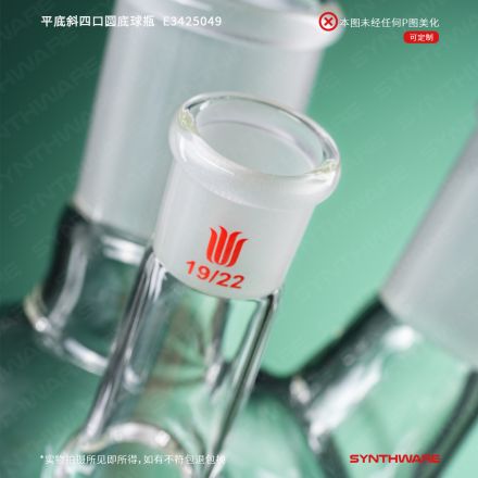 平底斜四口圆底球瓶,中间口:19/22,侧磨口:14/20,前口:14/20,100ml E349100