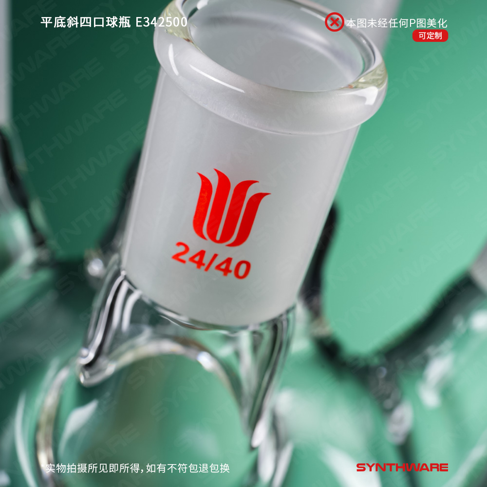 平底斜四口球瓶,中间口:24/40,侧磨口:24/40,前口:24/40,100ml E344400