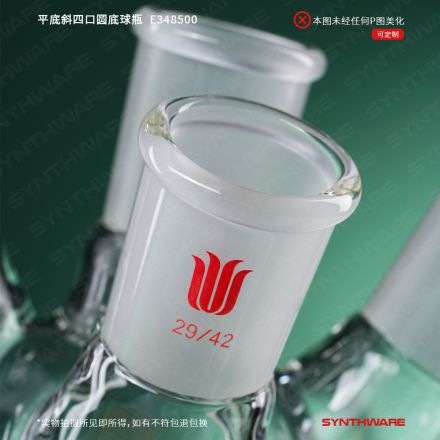 平底斜四口圆底球瓶,中磨口:29/42,侧口:24/40,前口:19/22,1000ml E3480049