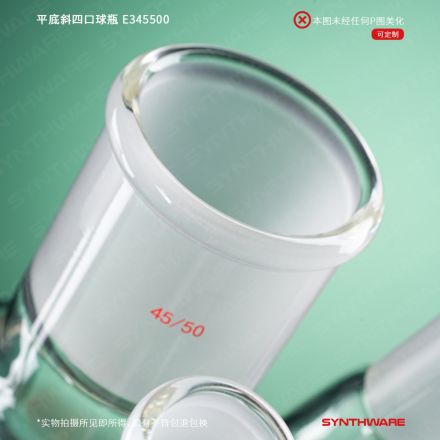平底斜四口圆底球瓶,中间口:45/50,侧磨口:24/40,前口:24/40,500ml E345500