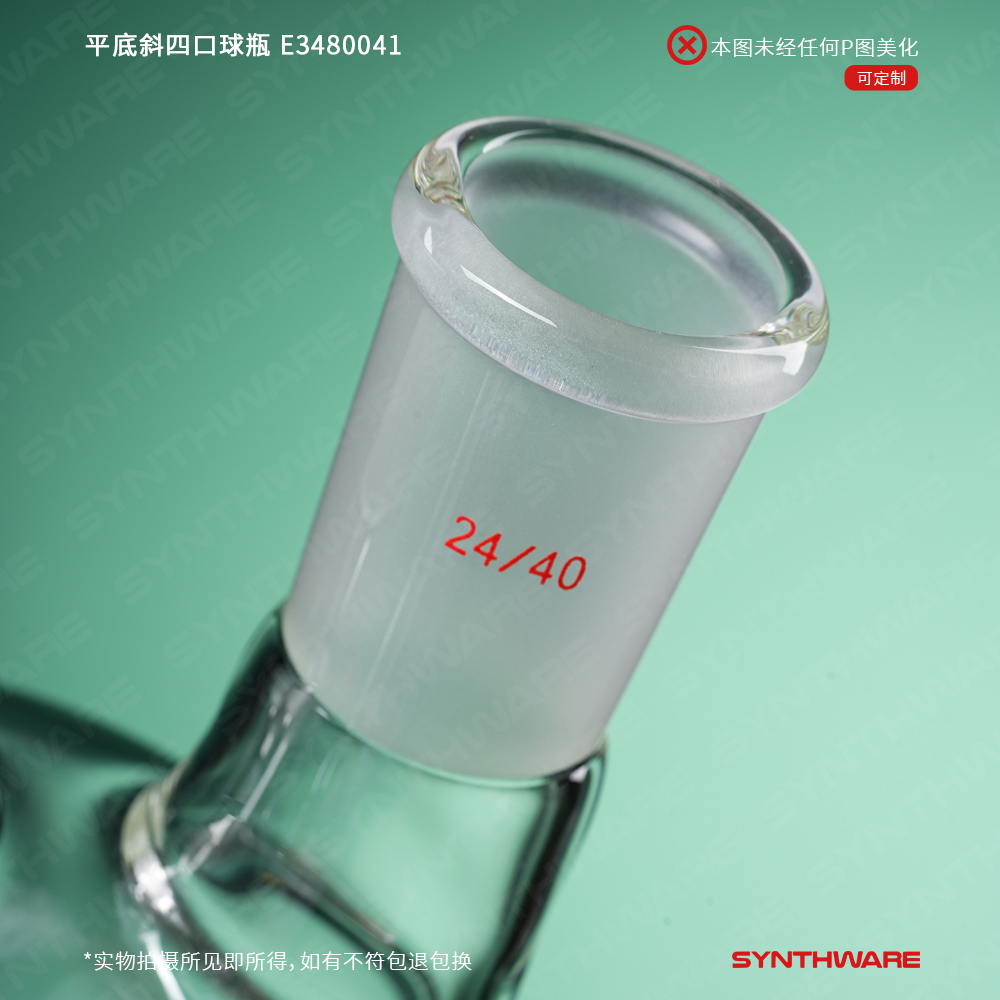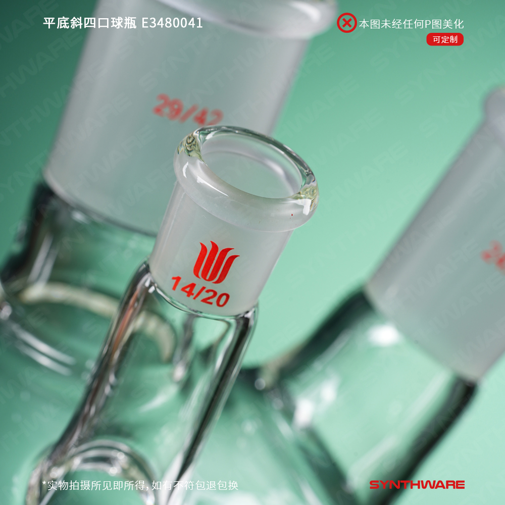 平底斜四口球瓶,中间口:24/40,侧磨口:14/20,前口:14/20,100ml E344100