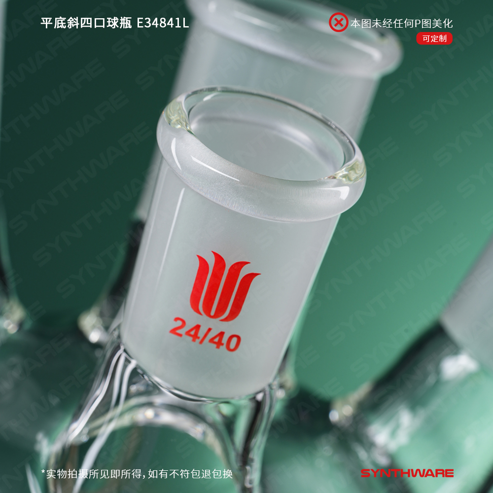 平底斜四口球瓶,中间口:24/40,侧磨口:14/20,前口:14/20,100ml E344100