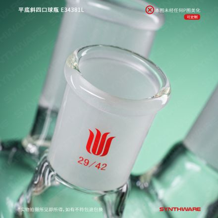 平底斜四口球瓶,中间口:29/42,侧磨口:24/40,前口:24/40,500ml E342500