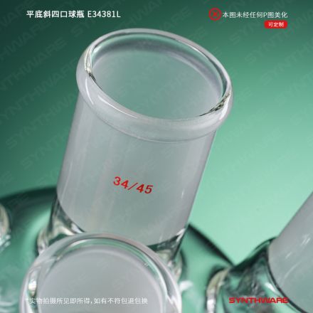 平底斜四口球瓶,中磨口:34/45,侧口:24/40,前口:24/40,1000ml E34341L