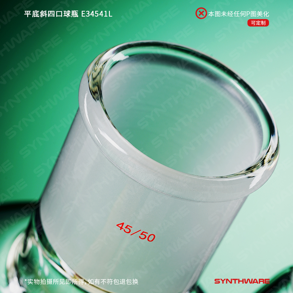 平底斜四口球瓶,中磨口:34/45,侧口:24/40,前口:24/40,1000ml E34341L
