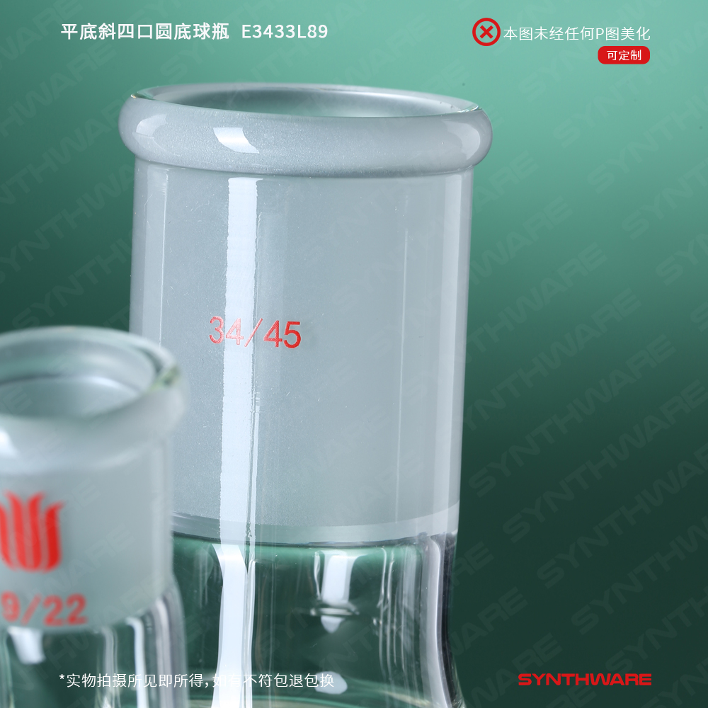 平底斜四口球瓶,中磨口:34/45,侧口:24/40,前口:24/40,1000ml E34341L