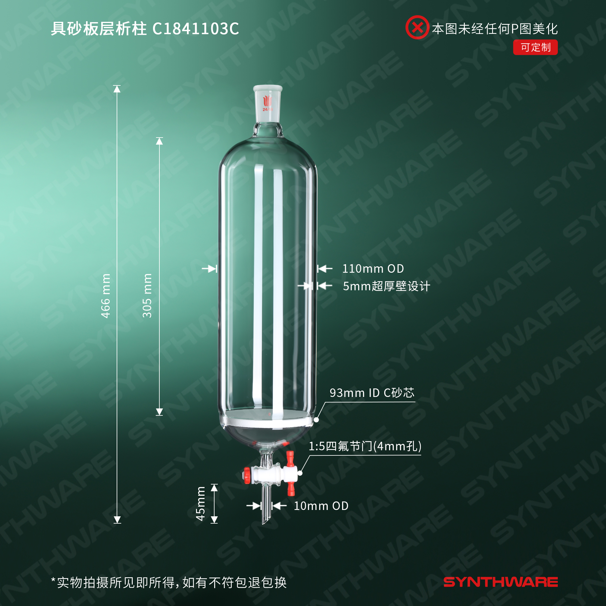 具砂板层析柱,φ110mm,有效长305mm,节门孔径:4mm,24/40 C1841103C C1841103C
