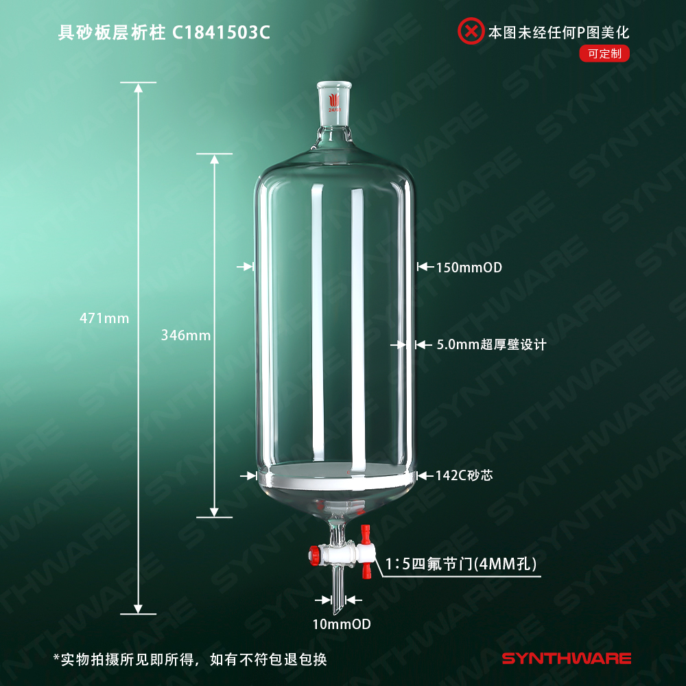 具砂板层析柱,φ150mm,有效长305mm,节门孔径:4mm,24/40 C1841503C C1841503C
