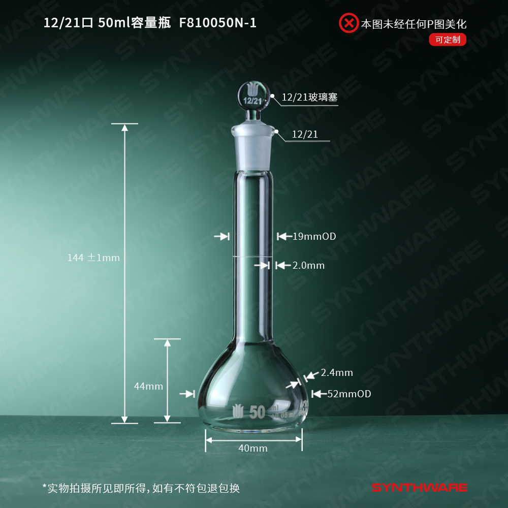 12/21口 50ml容量瓶,标配玻璃塞,带个体检测证书, F810050N-1 F810050N-1
