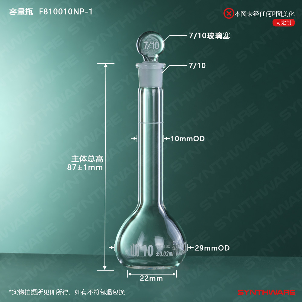 7/10口 10ml容量瓶,标配玻璃塞,不带个体检测证书, F810010NP-1 F810010NP-1