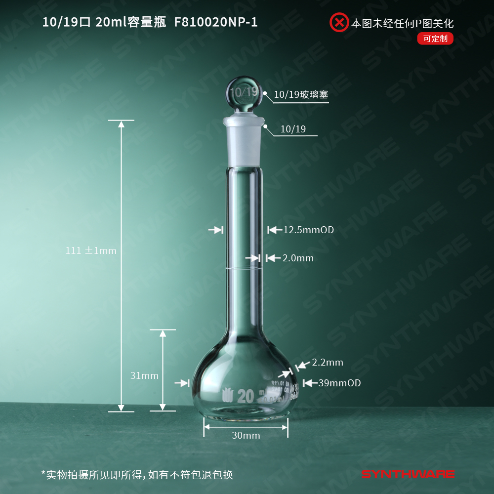 10/19口 20ml容量瓶,标配玻璃塞,不带个体检测证书, F810020NP-1 F810020NP-1