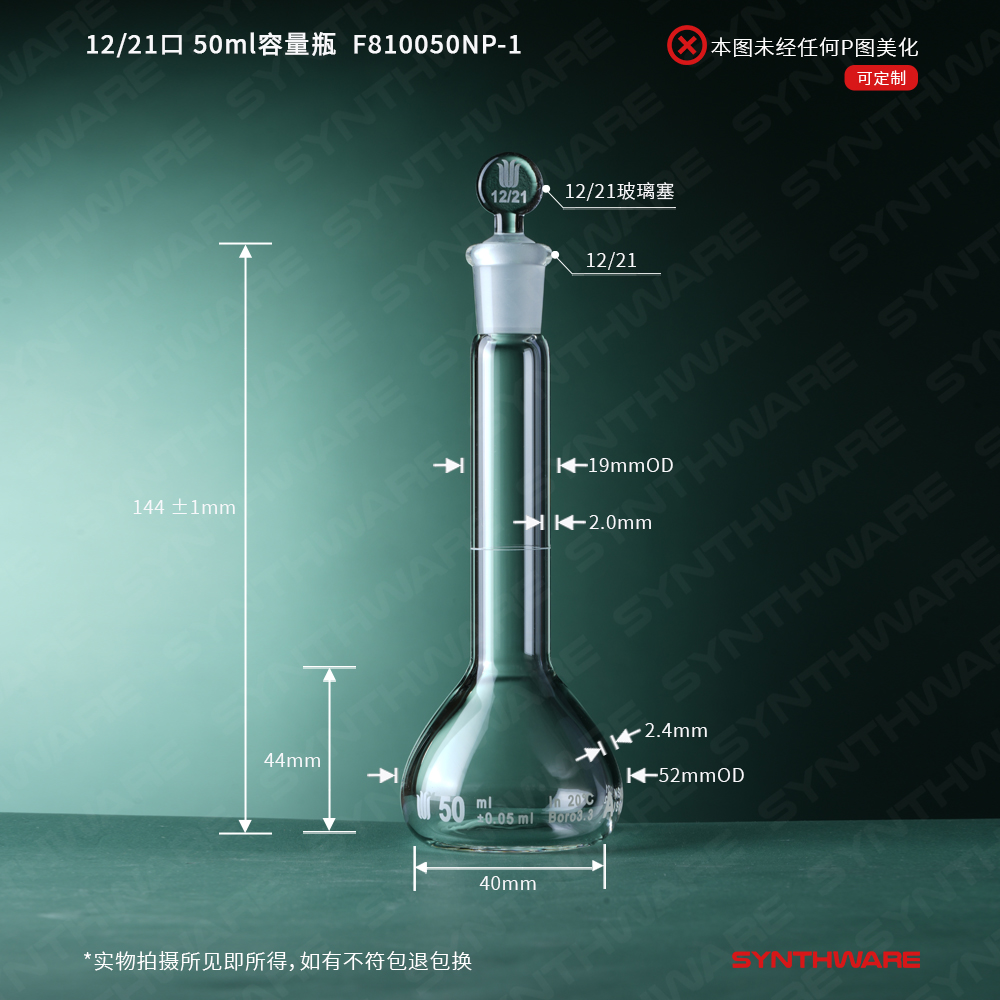 12/21口 50ml容量瓶,标配玻璃塞,不带个体检测证书, F810050NP-1 F810050NP-1
