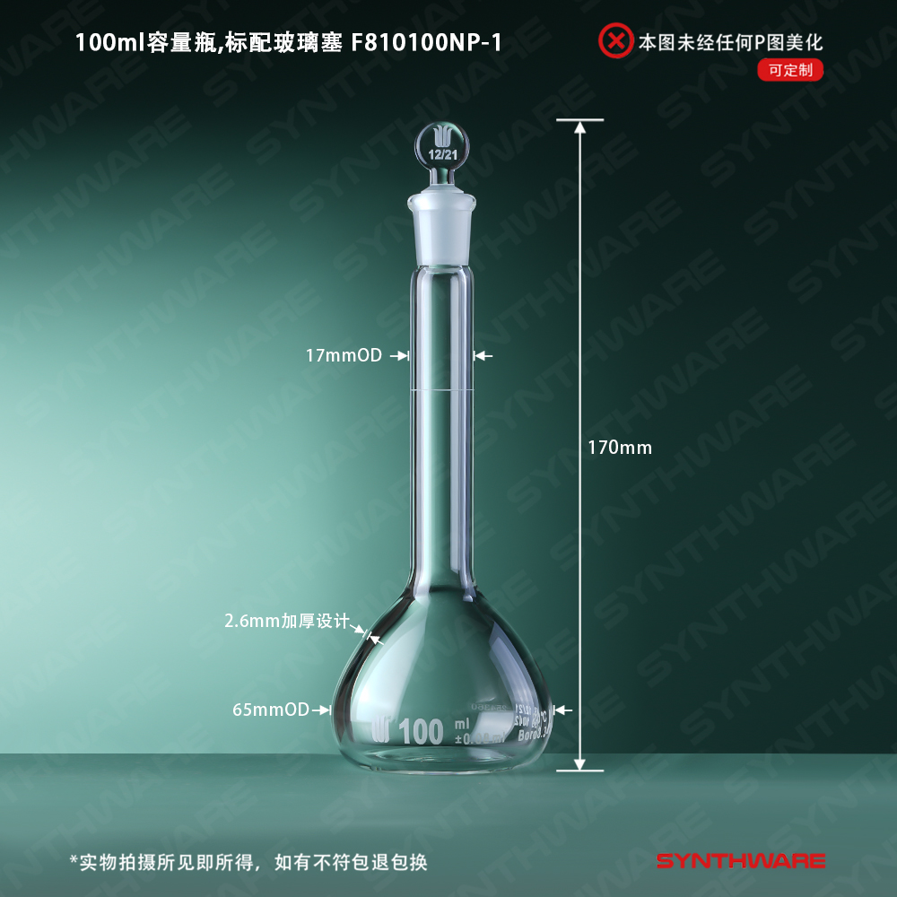 12/21口 100ml容量瓶,标配玻璃塞,不带个体检测证书, F810100NP-1 F810100NP-1