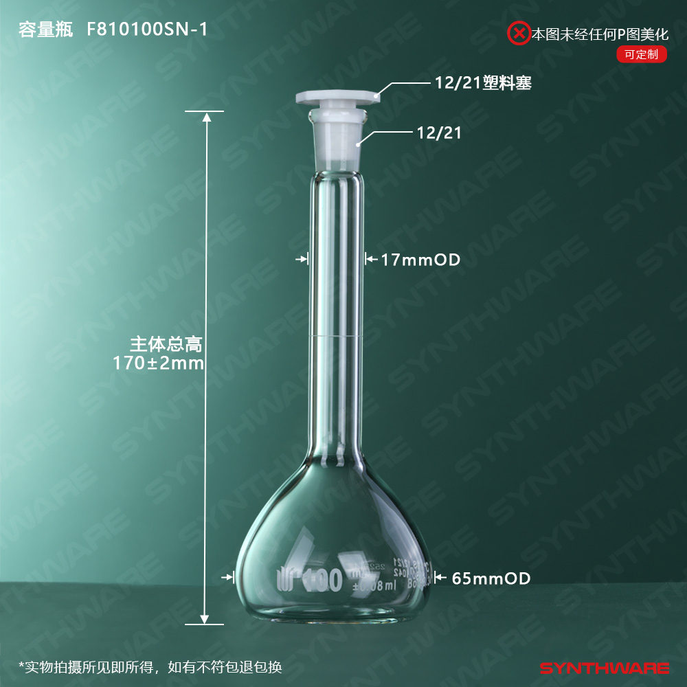12/21口 100ml容量瓶,标配塑料塞,带个体检测证书, F810100SN-1 F810100SN-1