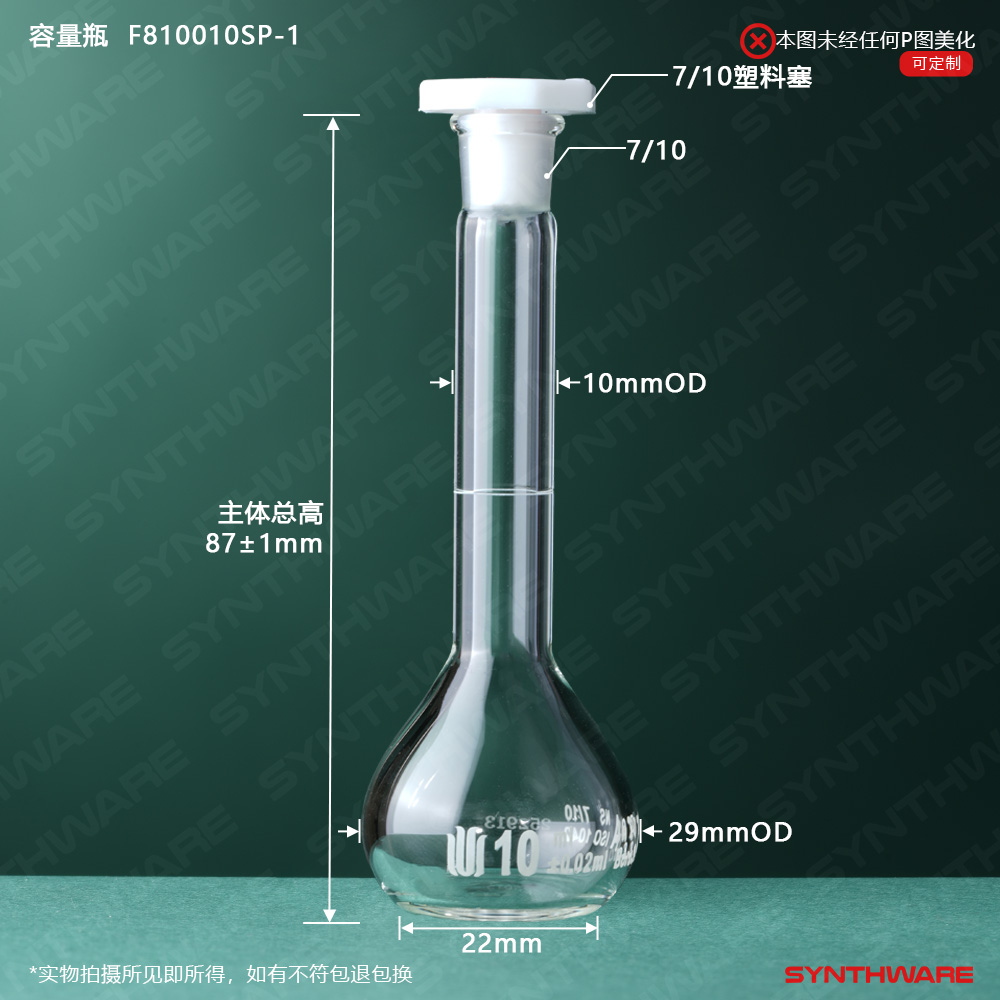 7/10口 10ml容量瓶,标配塑料塞,不带个体检测证书, F810010SP-1 F810010SP-1