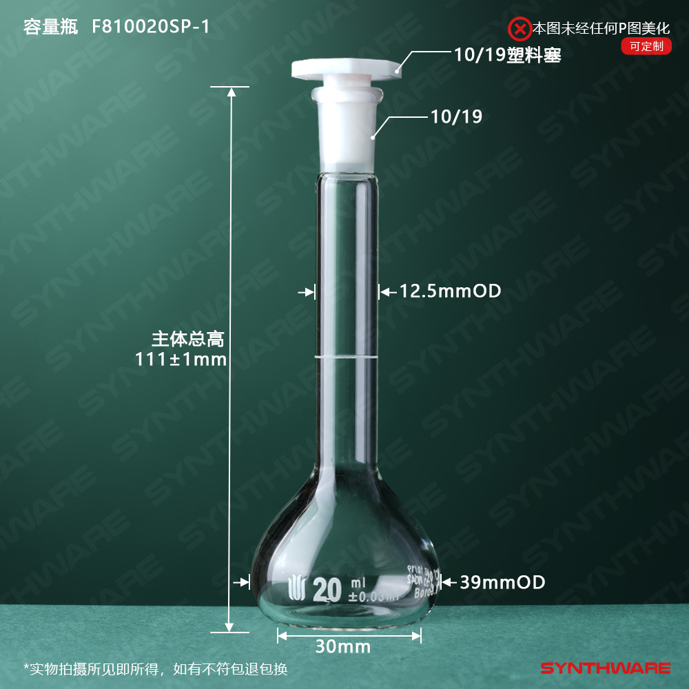 10/19口 20ml容量瓶,标配塑料塞,不带个体检测证书, F810020SP-1 F810020SP-1