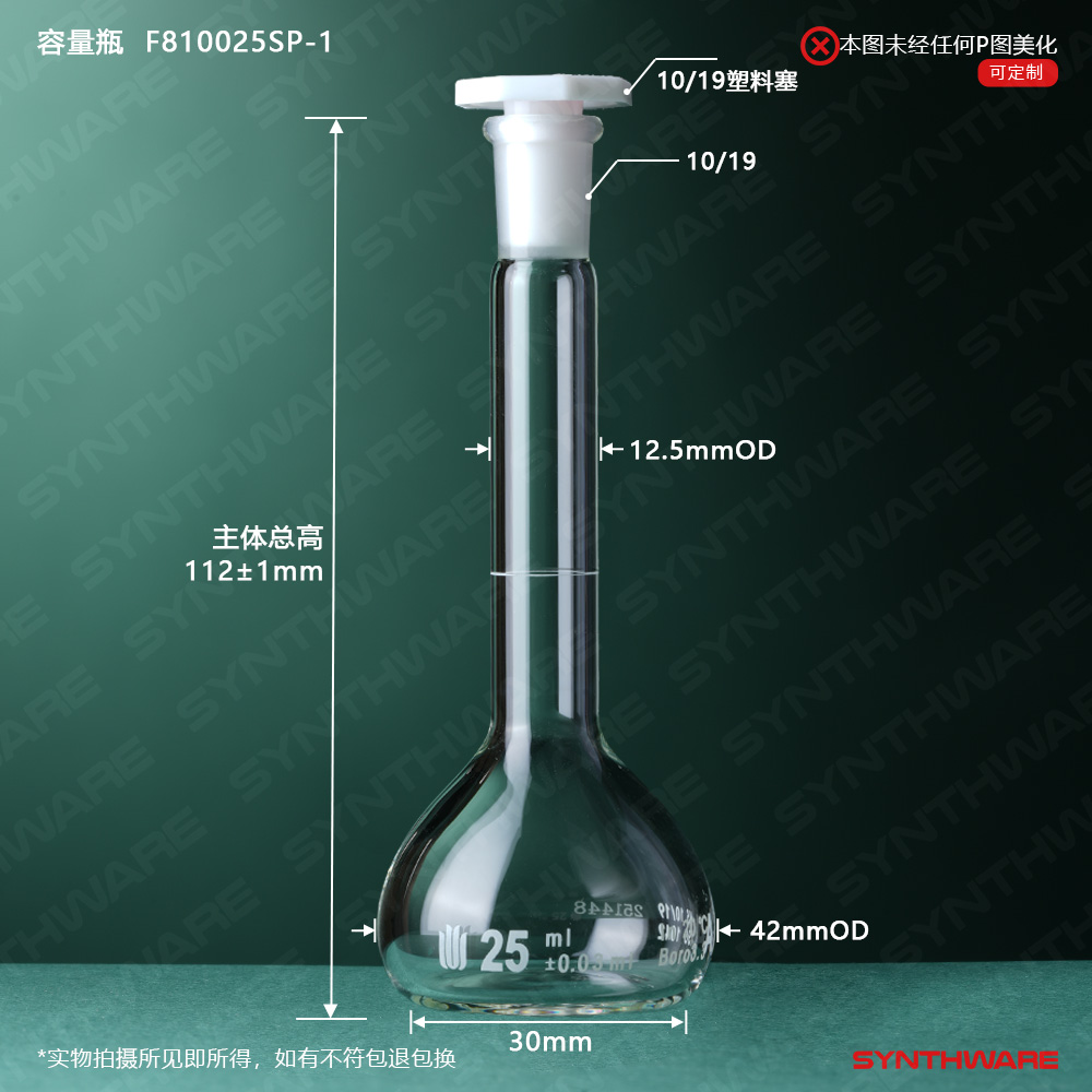 10/19口 25ml容量瓶,标配塑料塞,不带个体检测证书, F810025SP-1 F810025SP-1
