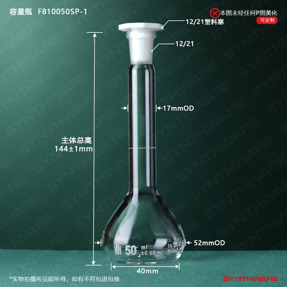 12/21口 50ml容量瓶,标配塑料塞,不带个体检测证书, F810050SP-1 F810050SP-1
