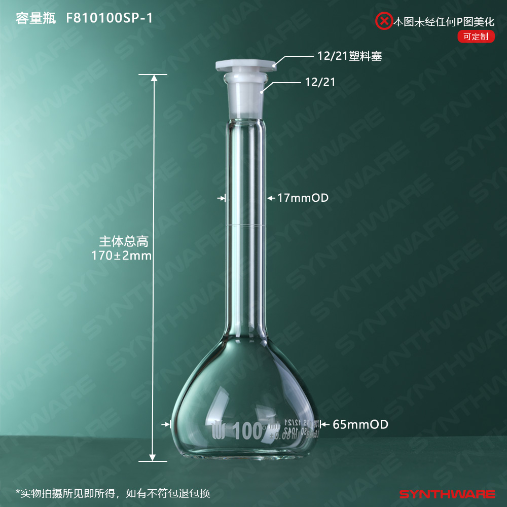 12/21口 100ml容量瓶,标配塑料塞,不带个体检测证书, F810100SP-1 F810100SP-1