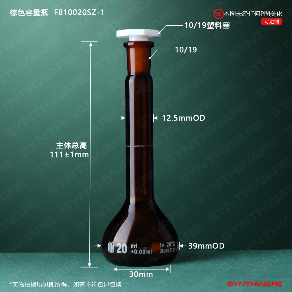 10/19口 20ml棕色玻璃容量瓶,标配塑料塞,不带个体检测证书, F810020SZ-1 F810020SZ-1