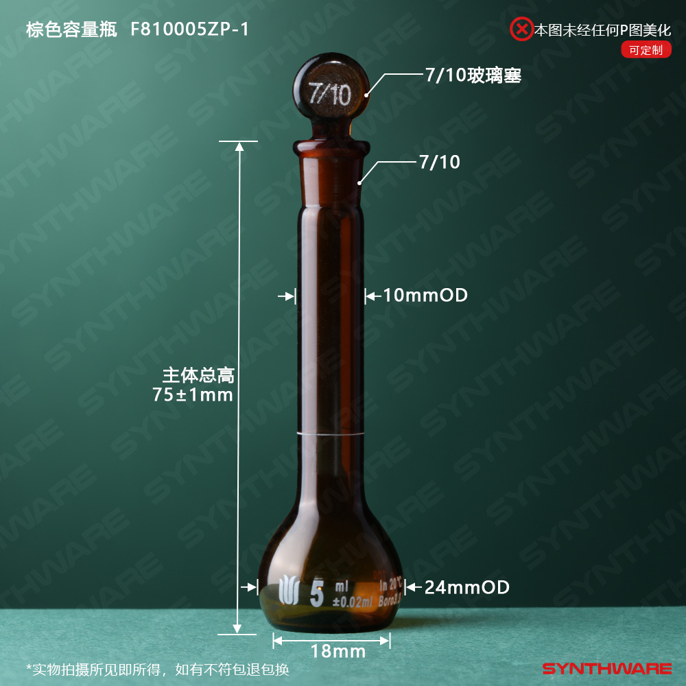7/10口 5ml棕色容量瓶,标配玻璃塞,不带个体检测证书, F810005ZP-1 F810005ZP-1