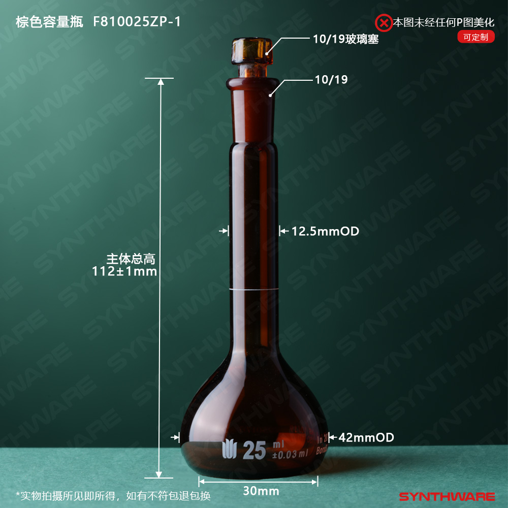 10/19口 25ml棕色容量瓶,标配玻璃塞,不带个体检测证书, F810025ZP-1 F810025ZP-1