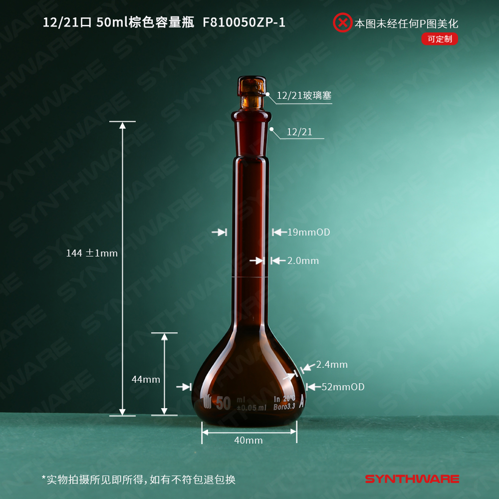 12/21口 50ml棕色容量瓶,标配玻璃塞,不带个体检测证书,F810050ZP-1 F810050ZP-1