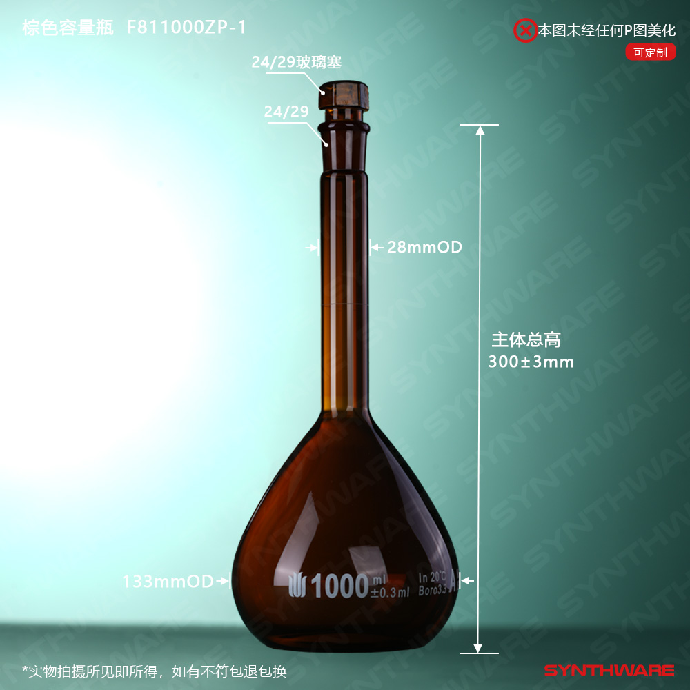 24/29口 1000ml棕色容量瓶,标配玻璃塞,不带个体检测证书, F811000ZP-1 F811000ZP-1