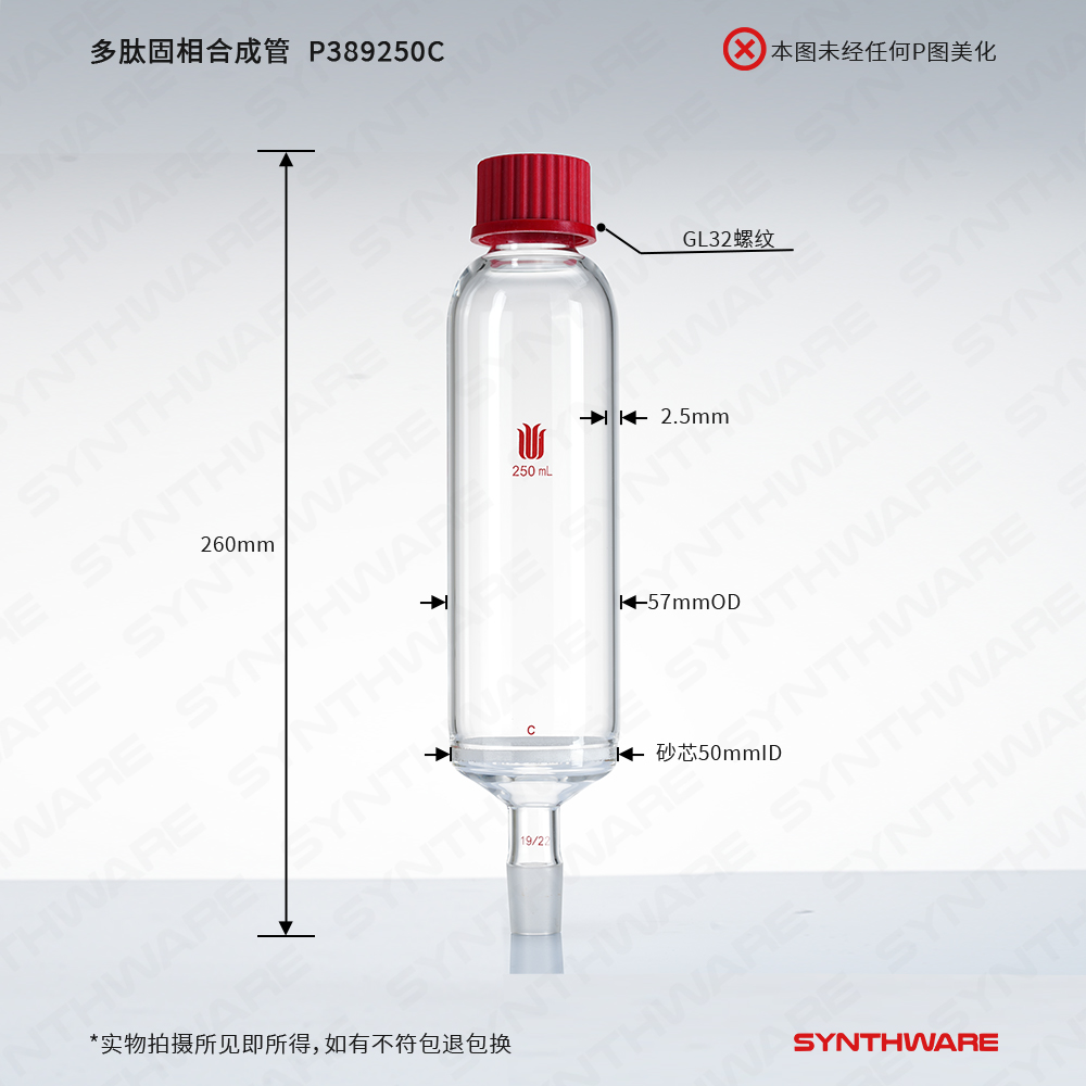 多肽固相合成管,19/22外磨口,250ml,32#,G3 P389250M