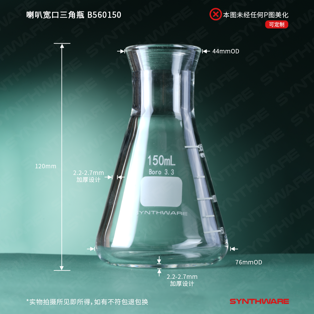 喇叭宽口三角瓶,厚壁带刻度,容量150ml,口内径:30mm B560150