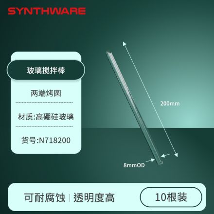 玻璃搅拌棒(两头烤圆),外径8mm长度200mm,10根/包 N718200 N718200