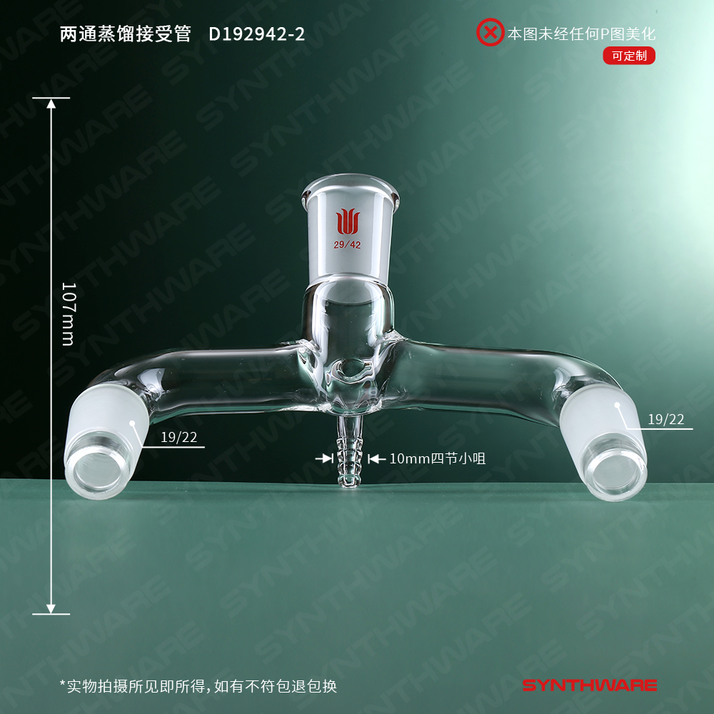 两通蒸馏接受管,具小咀,磨口:29/42 D192942-2