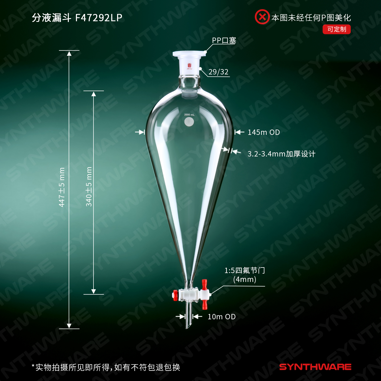 分液漏斗,上磨口:29/32 PP口塞,4mm四氟节门塞,2000ml F47292LP F47292LP
