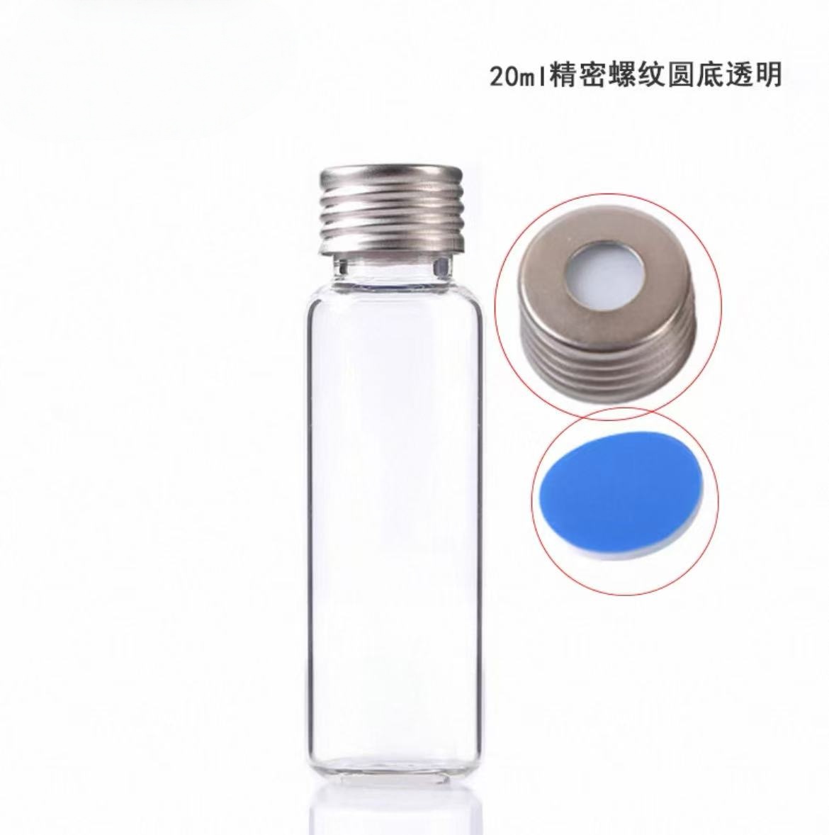 样品瓶,高硼硅3.3透明玻璃,20ml,18mm精细螺纹,22*75mm,具孔磁性盖/蓝膜白胶垫片,100/套