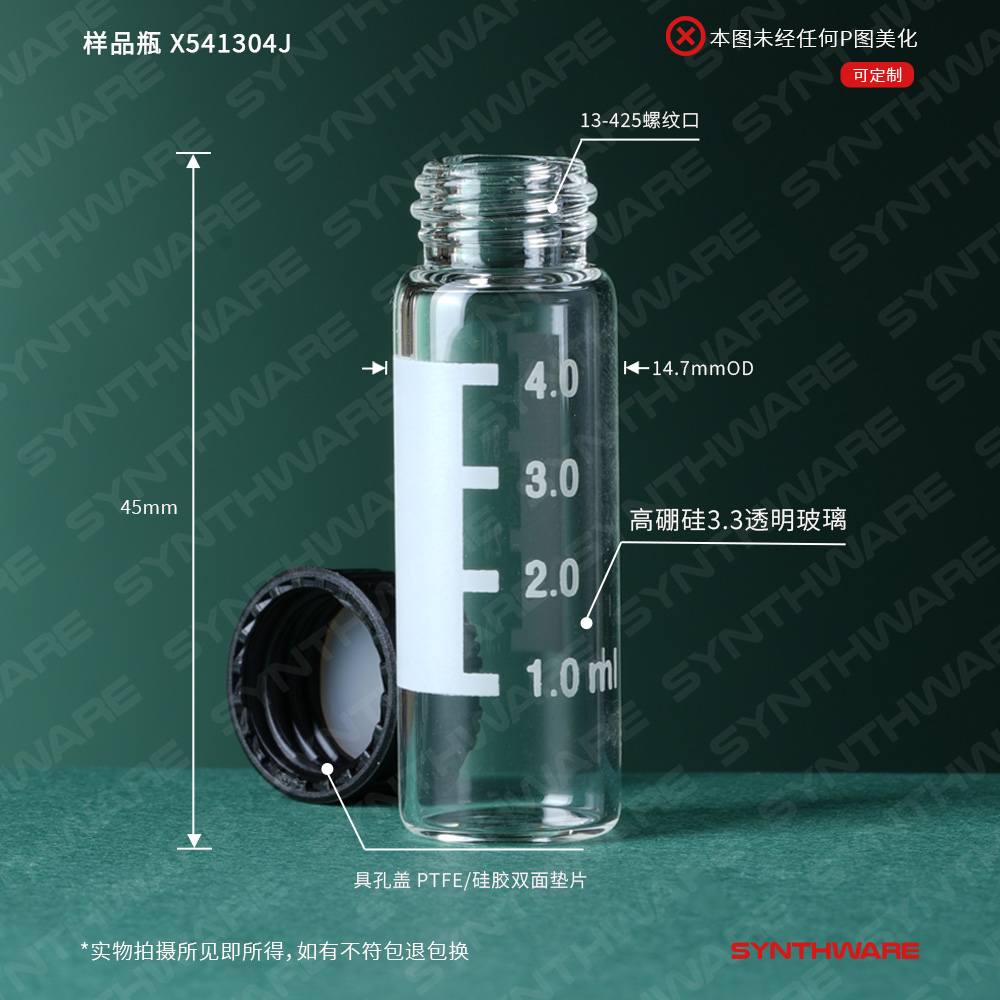 欣维尔自制,13-425螺纹口带书写标透明样品瓶+具孔盖+垫片,4mL,14.7*45mm,100套/套 X541304J