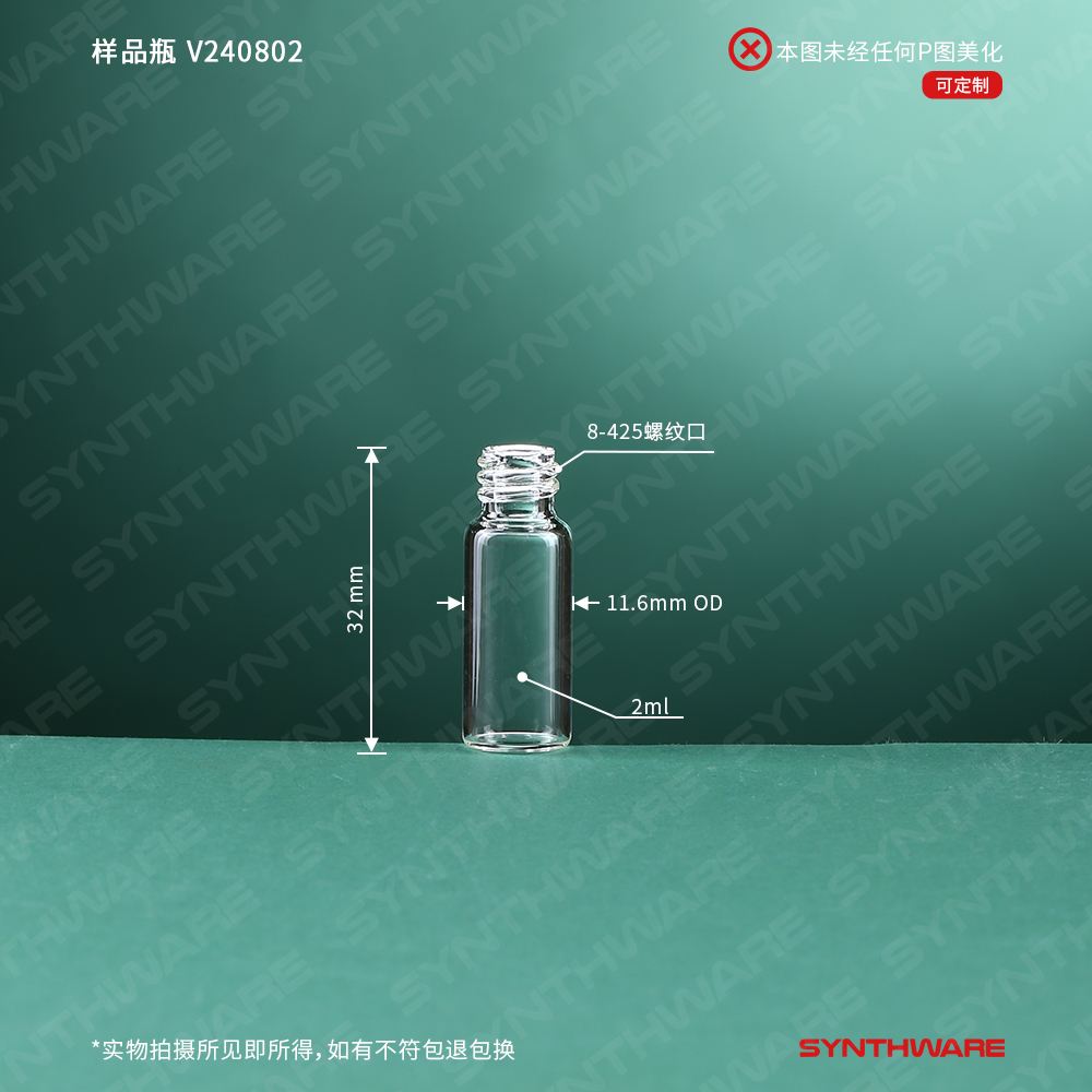 样品瓶,2ml,8-425螺纹口,11.6*32mm 普料透明玻璃,100个/盒 V240802