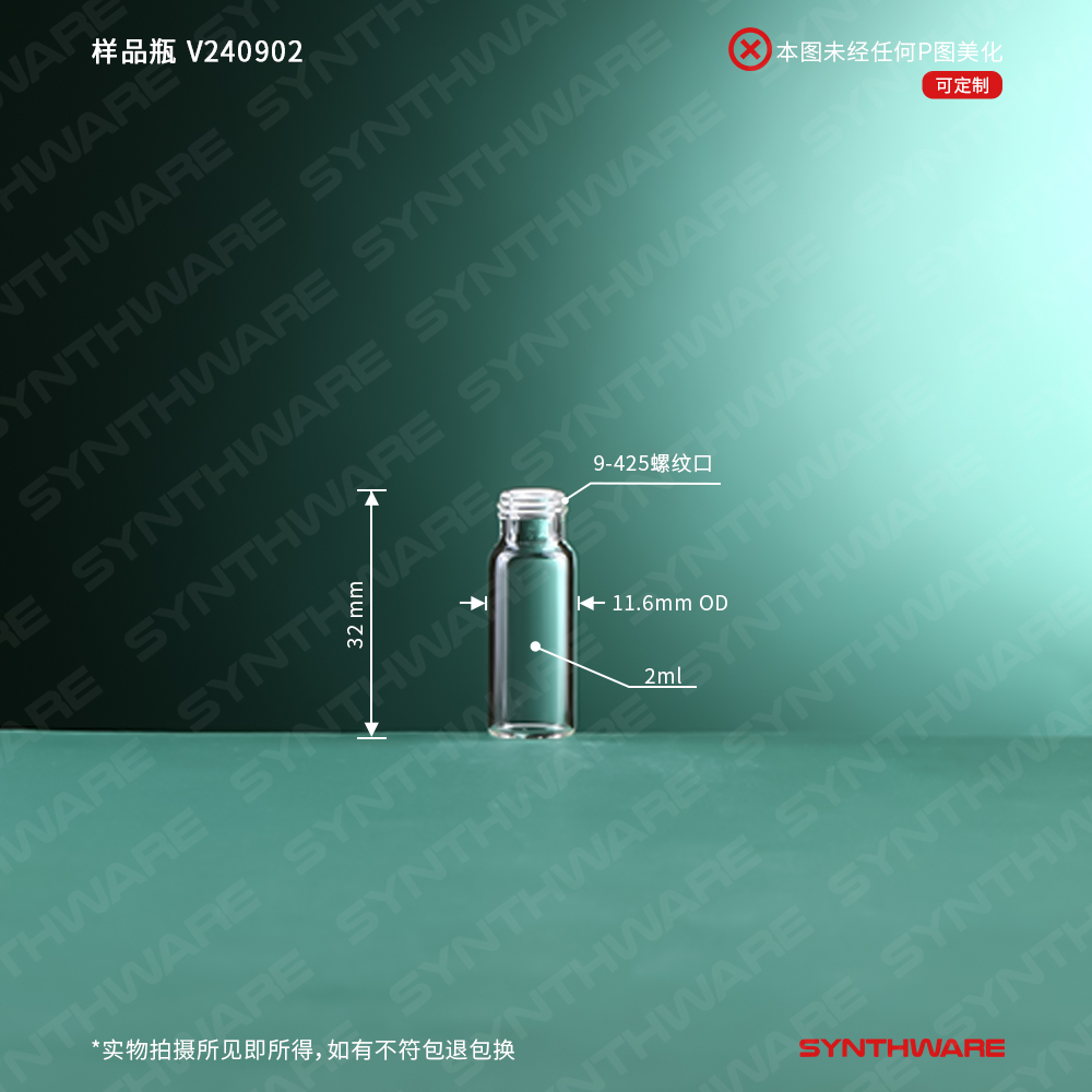 样品瓶,2ml,9-425螺纹口,11.6*32mm 普料透明玻璃,100个/盒 V240902