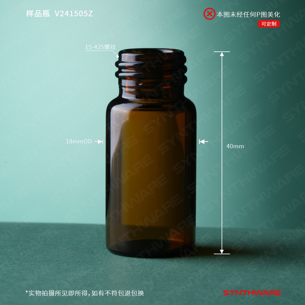 样品瓶,5ml,15-425螺纹口,18*40mm 普料棕色玻璃,100个/盒 V241505Z