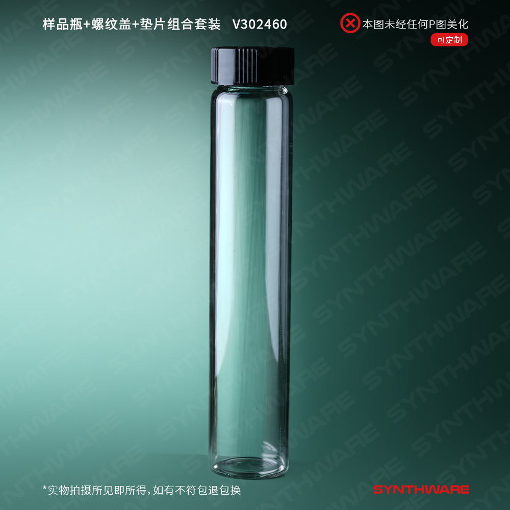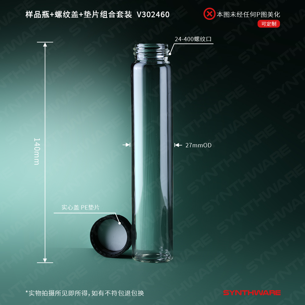 样品瓶套装,60ml,24-400螺纹口,27*140mm 普料透明玻璃,标配:实心盖 PE垫片,100套/套 V302460