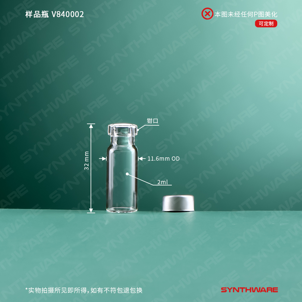 样品瓶套装,2ml,8-425螺纹口,11.6*32mm 普料透明玻璃,标配:实心盖 PTFE/硅胶垫片,100套/套 V290802