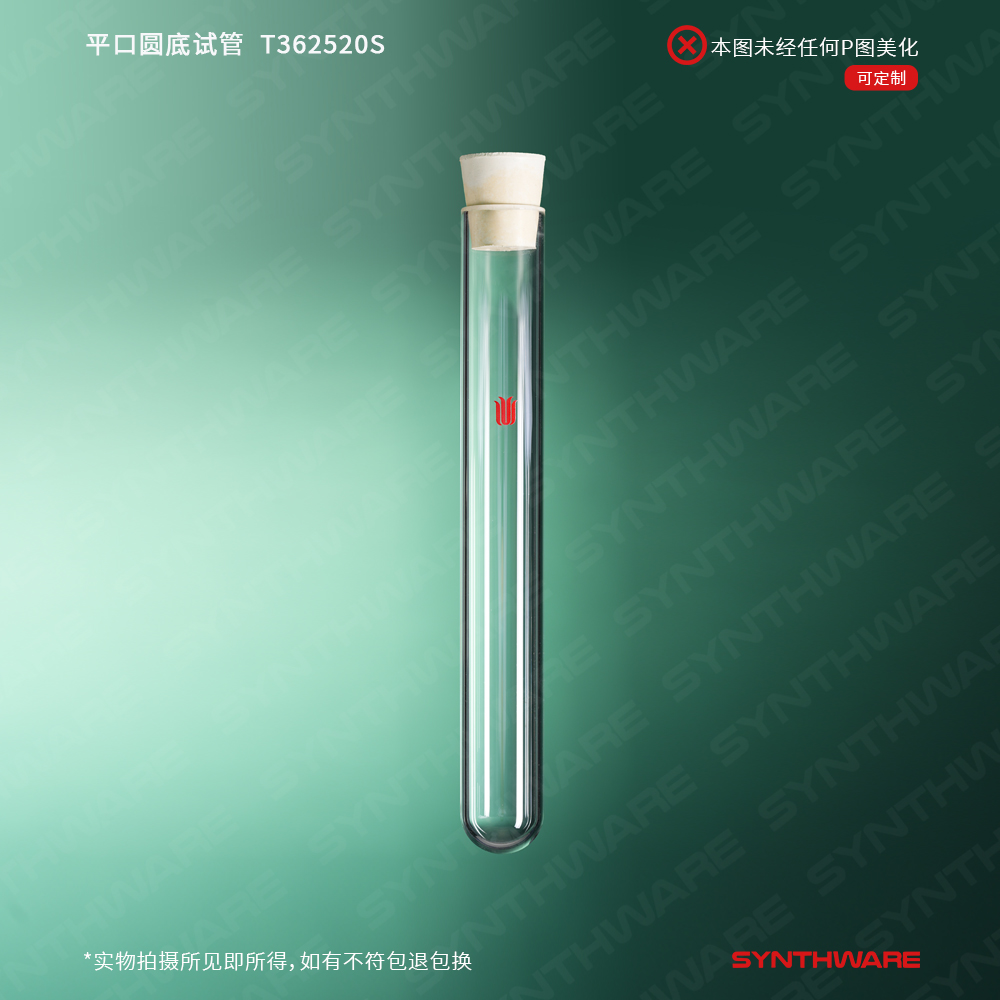 平口圆底试管,标配胶塞,高硼硅3.3玻璃,外径*总长25*200mm,10支/包 T362520S