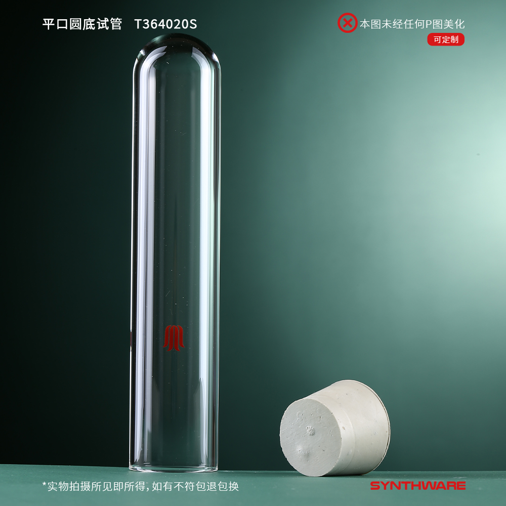 平口圆底试管,标配胶塞,高硼硅3.3玻璃,外径*总长20*180mm,10支/包 T362180S