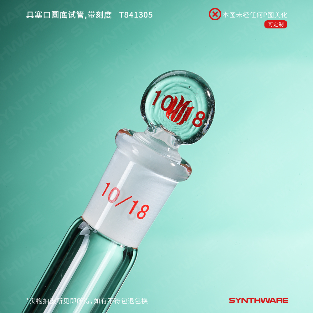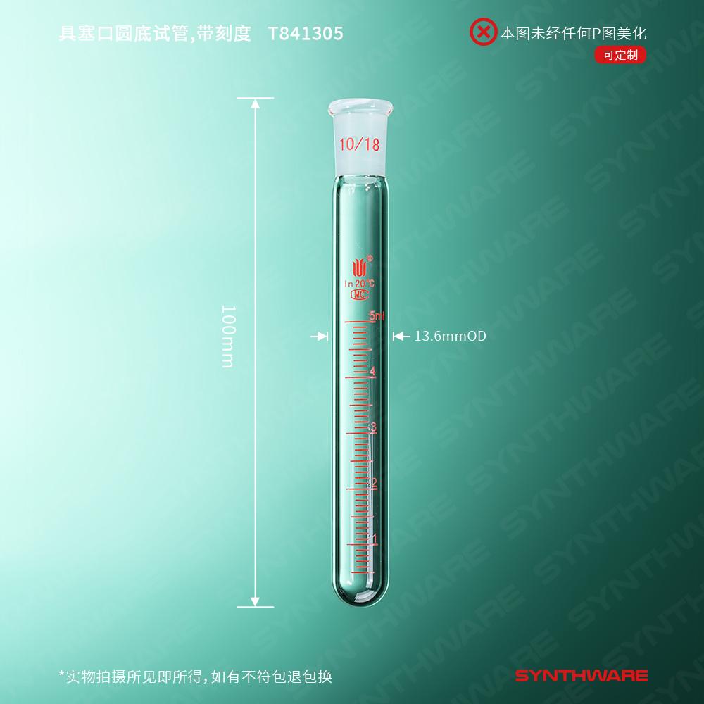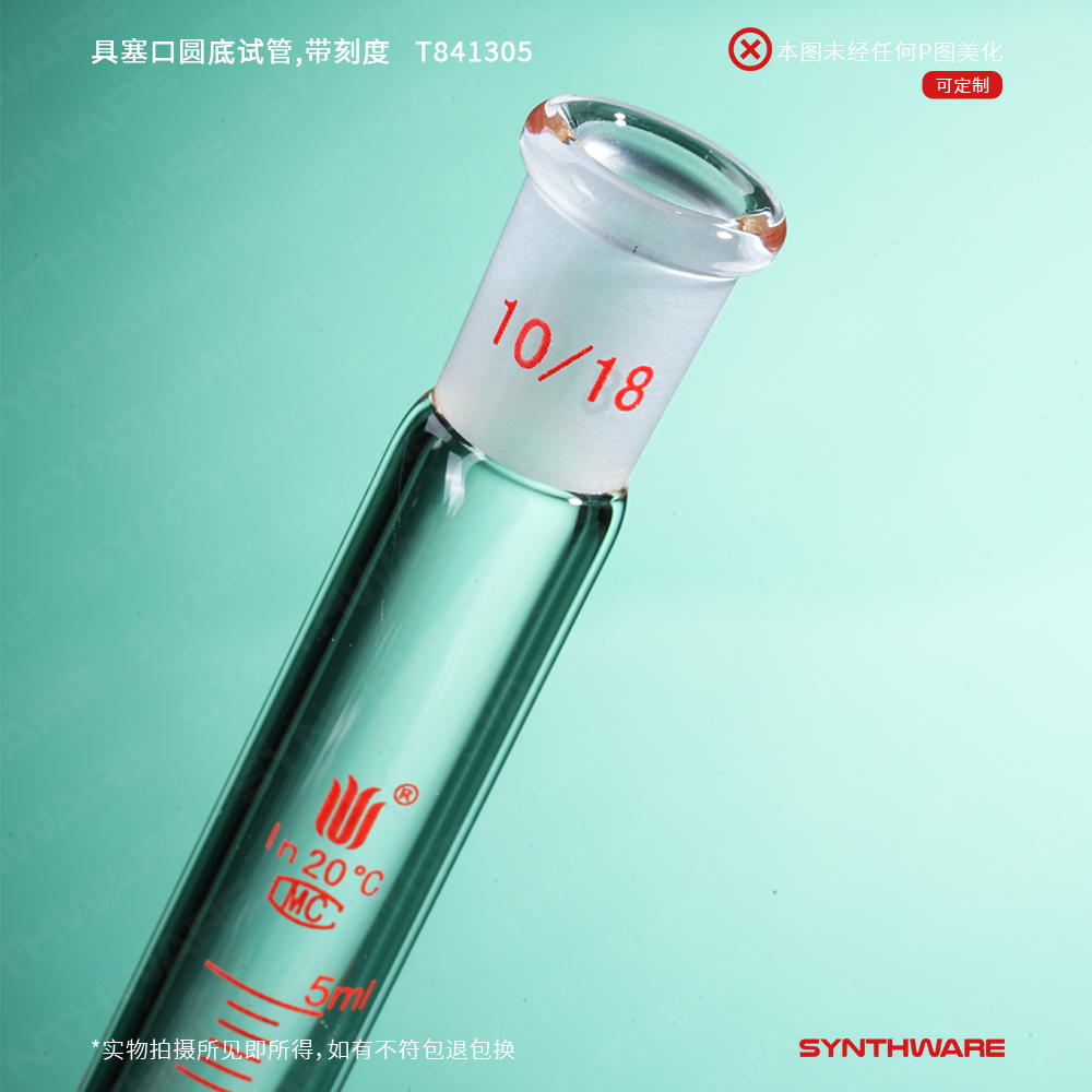 (库存售完即止)具塞口圆底试管,带刻度,10/18口,5ml,外径*有效长度13.6*100mm T841305
