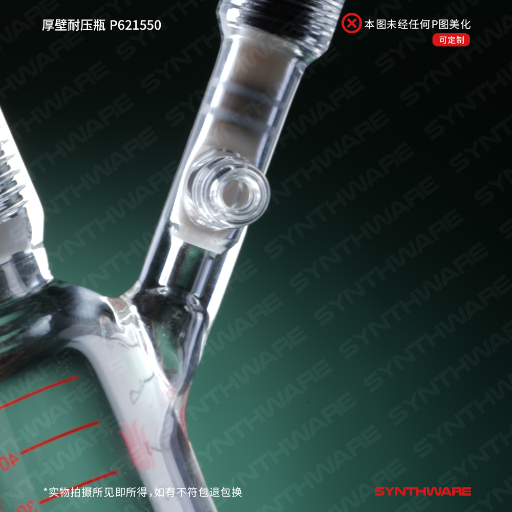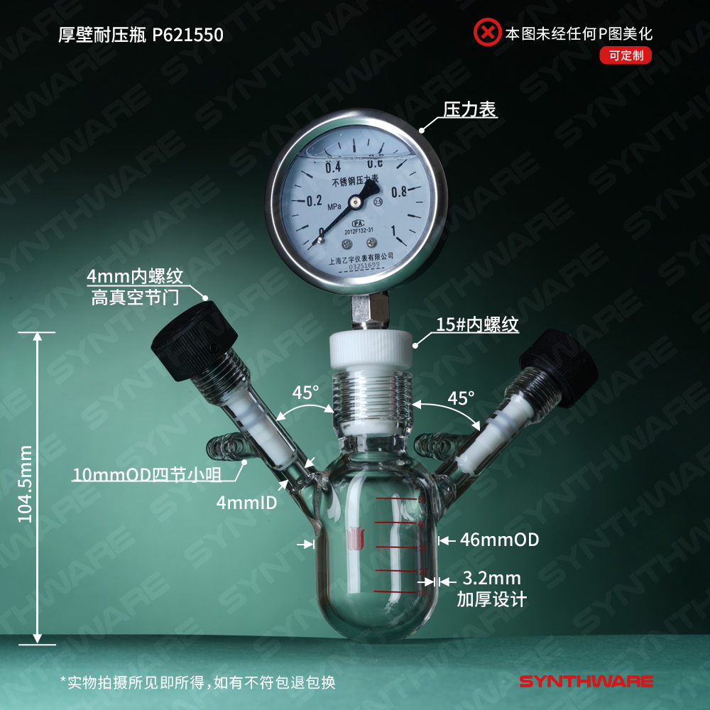 厚壁耐压瓶,带刻度,15#内螺纹口带压力表,双侧内螺纹高真空,容量:100ml P621100