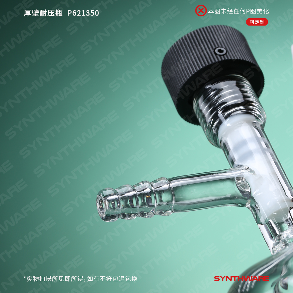厚壁耐压瓶,带刻度,15#内螺纹口带压力表,双侧内螺纹高真空,容量:50ml P621550