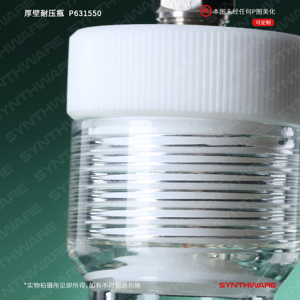 厚壁耐压瓶,带刻度,25#螺纹口带压力表,单侧内螺纹高真空,具温度计套管,容量:350ml P632350