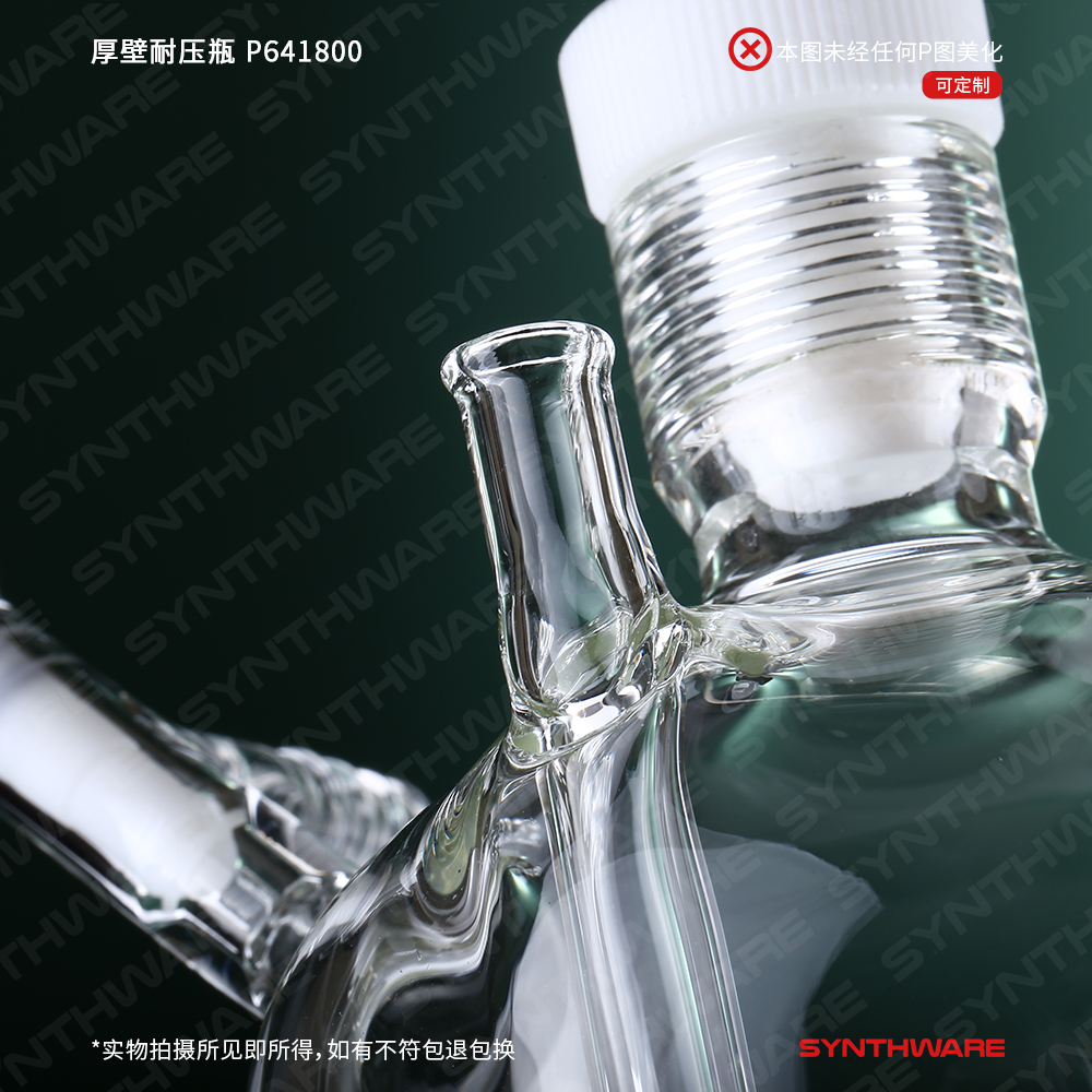 厚壁耐压瓶,带刻度,25#螺纹口带压力表,双侧内螺纹高真空,具温度计套管,容量:350ml P642350