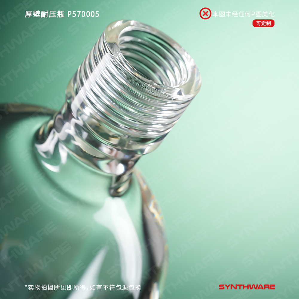 # 厚壁耐压管为内螺纹口,瓶身采用3.3高硼硅厚壁玻璃管制得,标配四氟螺纹盖(含四氟密封环)和0.6 MPa泄压阀。