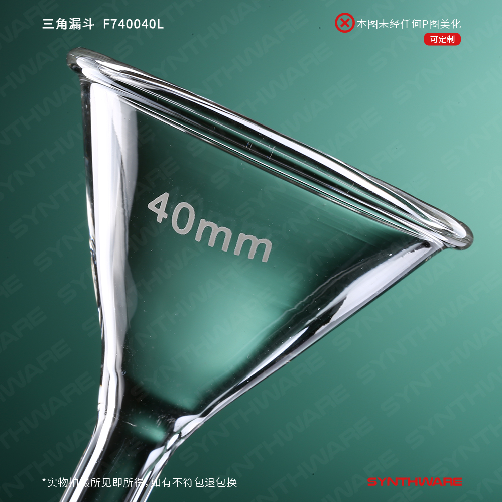 长颈三角漏斗,上口直径40mm,下管外径6mm,150mm长,磨45°斜茬 F740040L