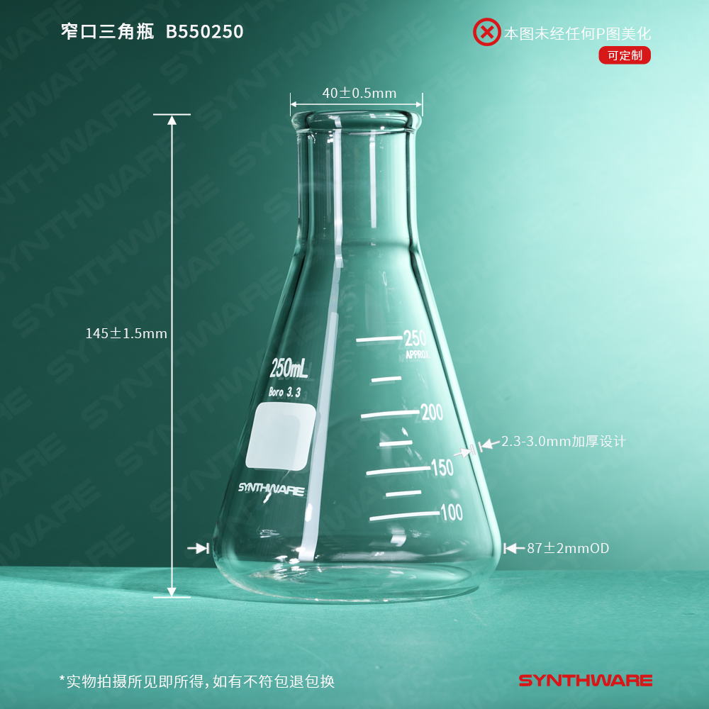 窄口三角瓶,厚壁带刻度,容量250ml,口内径:30mm B550250